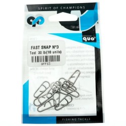 Παράγονται από υψηλής ποιότητας ανοξείδωτο χάλυβα, για την αποφυγή οξείδωσης, ακόμη και στα πιο δύσκολα θαλασσινά περιβάλλοντα υψηλής αλατότητας. Η ακρίβεια στην κατασκευή τους και η επεξεργασία σκλήρυνσης, βελτιστοποιούν την αντοχή τους σε εφελκυσμό και την ελαστικότητα. Όλα τα μοντέλα της σειράς QUO Fast Snap έχουν υποστεί ειδική χημική κατεργασία λείανσης, για την αποφυγή της φθοράς των παράμαλλων. Οι αντοχές όλων των μεγεθών θα σας εκπλήξουν ευχάριστα και δεν θα σας απογοητεύσουν σε όποιο ψάρεμα κι αν τις χρησιμοποιήσετε.