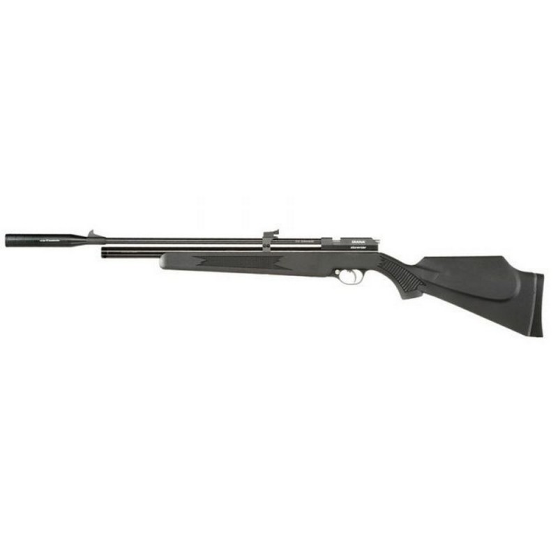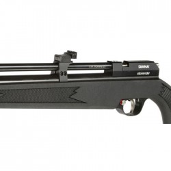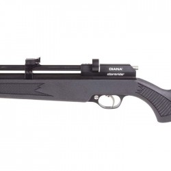 DIANA STORMRIDER ΜΑΥΡΟ 4,5 χλστ. Καταπληκτικό αεροβόλο PCP από την εταιρεία DIANA. Έχει ένα πολύ ωραίο συνθετικό μάγουλο. Μπορεί να λειτουργήσει ως μονή σφαίρα αλλά μπορεί να δεχθεί και γεμιστήρα με 9 μπάλες που περιλαμβάνεται. Μπράτσα με κινητή ουρά (Bolt Action). Είναι ένα πολύ ελαφρύ αεροβόλο (2,3kg), γεμίζει έως 200 bar (2900 psi) με χωρητικότητα θαλάμου 100cc. Τα σκοπευτικά του είναι ρυθμιζόμενα (Iron Sights) και διαθέτει βάση για θήκη διόπτρας. Διαθέτει ασφάλεια μπροστά στη σκανδάλη, το μανόμετρο βρίσκεται στο κάτω μέρος του κοντάκι και το μπροστινό μέρος της κάννης έχει πέρασμα για υποδοχή σιγαστήρα (ΔΕΝ περιλαμβάνεται λόγω νομοθεσίας). Το DIANA STORMRIDER BLACK 4,5 mm είναι ένα εκπληκτικό αεροβόλο τουφέκι, ιδανικό τόσο για μεγάλους όσο και για μικρούς σκοπευτές.