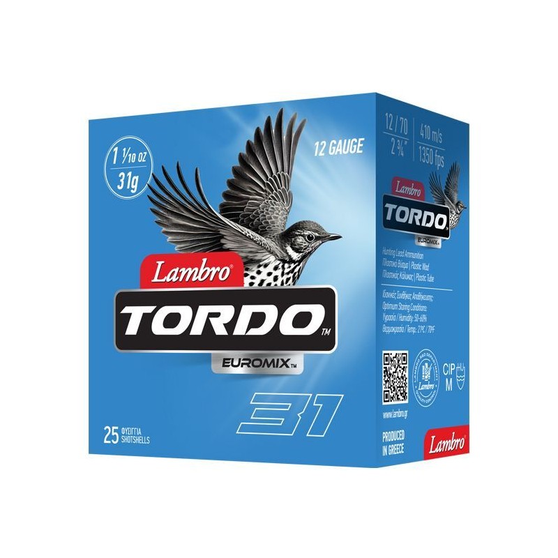 Tα φυσίγγια Euromix Tordo είναι αποδοτικά το καλοκαίρι, αξιόπιστα και το χειμώνα. Μια αρκετά οικονομική πρόταση με ιδιαίτερα χαρακτηριστικά αφού συνδυάζει 2 διαφορετικά νούμερα σκαγιών κάτι που επιτρέπει στον κυνηγό να έχει την απαιτούμενη πυκνότητα στις κοντινές βολές και υψηλή αποτελεσματικότητα στις μεγάλες αποστάσεις.
