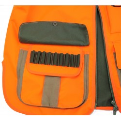 Ελαφρύ πορτοκαλί γιλέκο υψηλής ορατότητας με διαπνέον εσωτερικό ύφασμα και καφέ λεπτομέρειες.