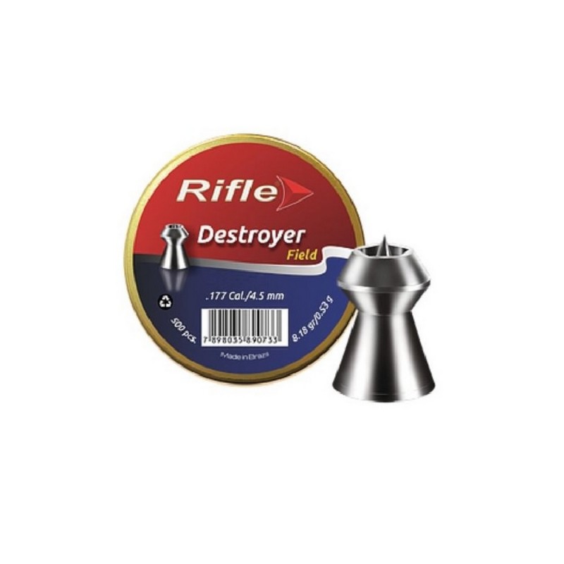 Βλήματα Destroyer SB 4,5mm της RIFLE σε μεταλλικό κουτί των 500 τεμαχίων. Είναι κατάλληλες για όλα τα αεροβόλα όλων των 4,5mm διαμετρημάτων.