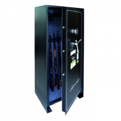 The gun safe operates with a combination & key and takes 4 AA batteries. It has an internal shelf with a separate key and there are ready holes for the floor and wall.